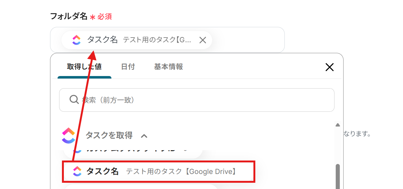 Google Driveで特定条件に合うファイルが格納されたら、ClickUpにタスクを追加する