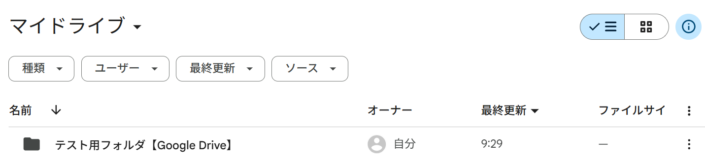 テスト後は、きちんとGoogle Driveにフォルダが作成されているか確認しておくと安心です。