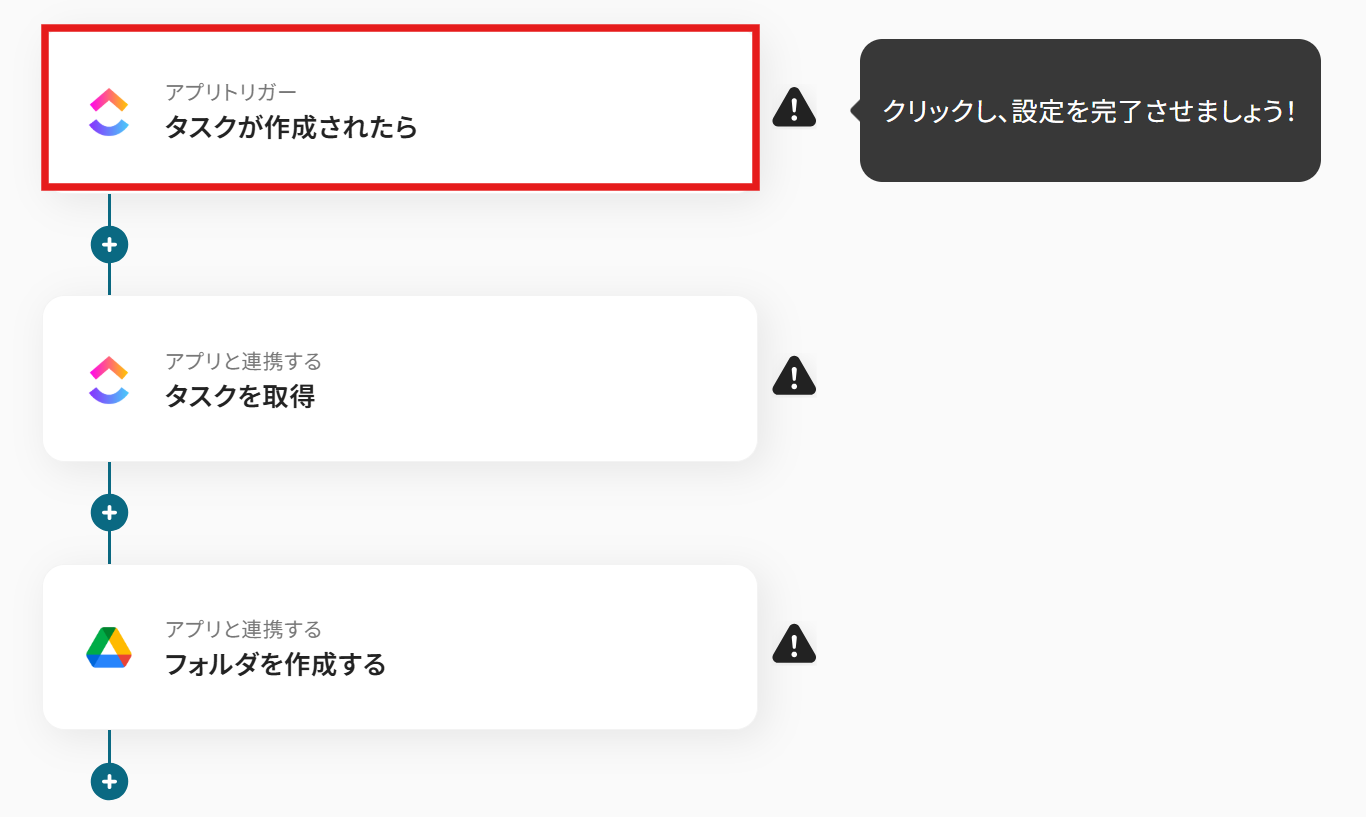 それでは、ClickUpとGoogle Driveを連携したフローを作成してみましょう!