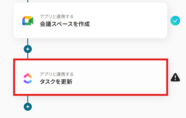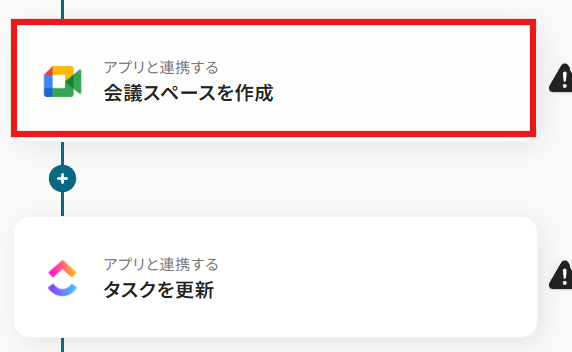 ClickUpで作成されたタスクの中から、例えば「会議」や「打ち合わせ」といった特定のキーワードを含むタスクが作成された場合にのみ、Google Meetの会議スペースを自動で作成し、そのURLをタスクに追記する連携です。