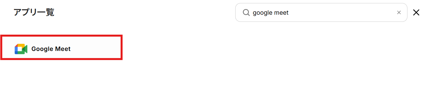 - 次に、トリガーでGoogle Meetを選択し、「会議が終了したら」というアクションを設定します。