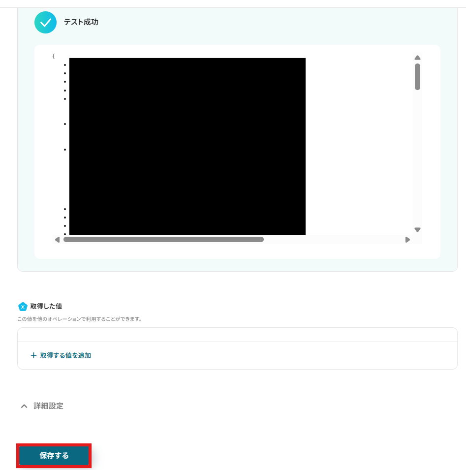 また、アクション設定時の「テスト」ボタンでもエラーがあれば内容が表示されます。