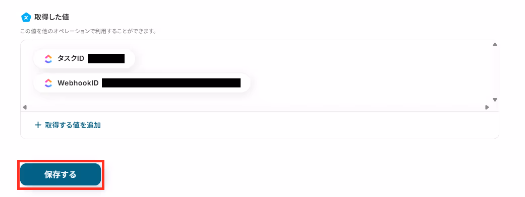 「タスクのタイトル」と「タスクの内容」を、取得した値から選択しましょう。