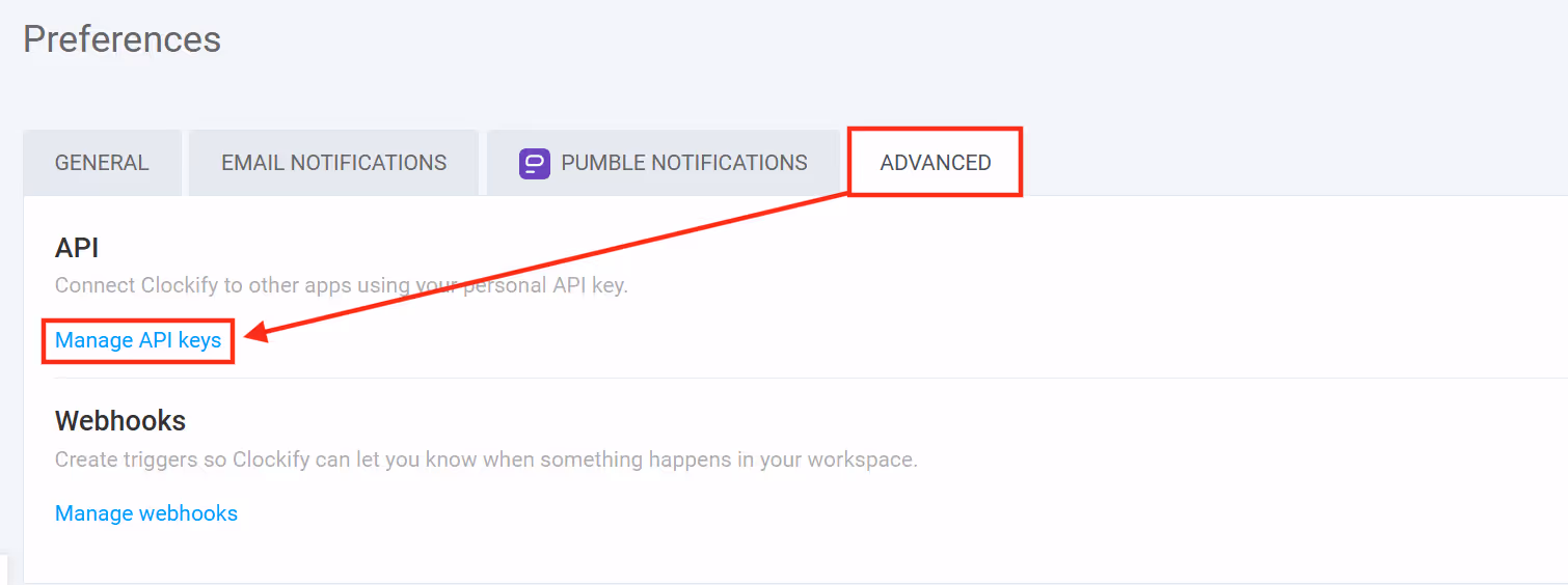 次に「ADVANCED」をクリックし、「Manage API keys」を選択します。