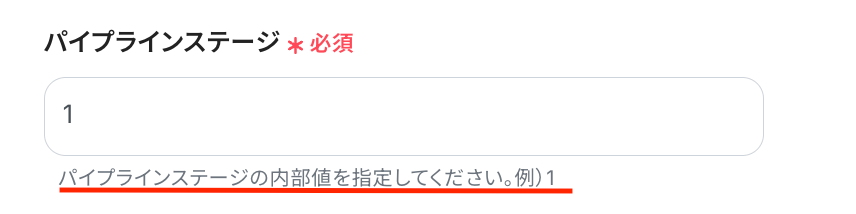 「パイプラインステージ」は、入力欄下の注釈に従い入力してください。