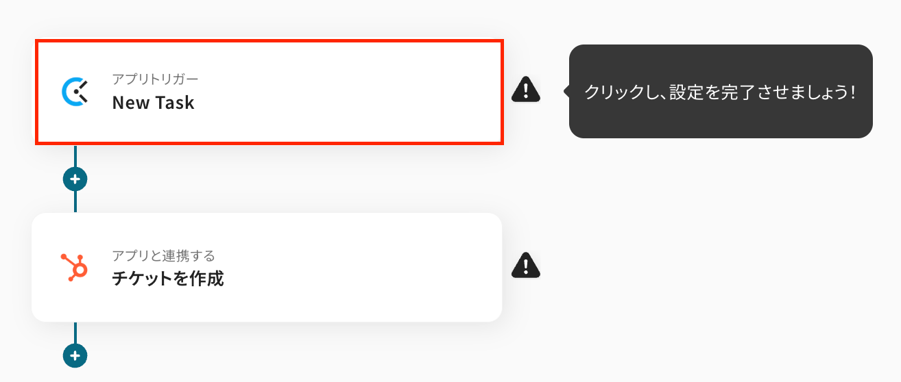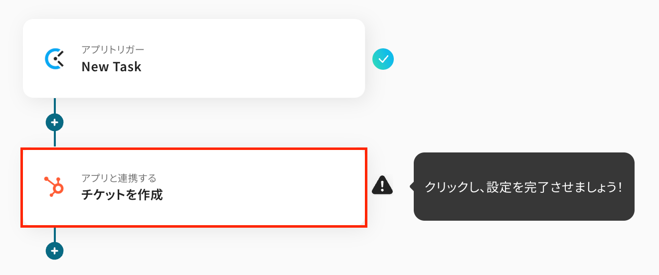 続いて、Clockifyに作成されたタスク情報を基に、HubSpotにチケットを作成する設定を行います。