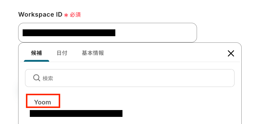 次に、「Workspace ID」を入力欄をクリックして表示される候補から選択します。