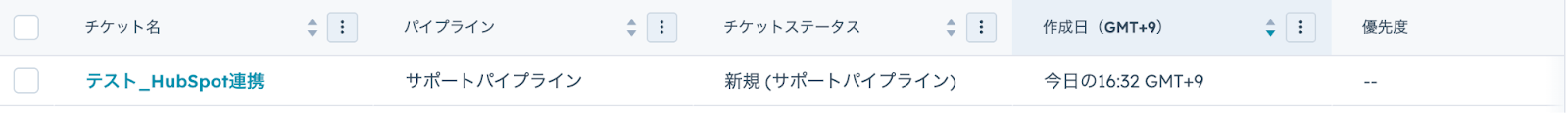 設定が完了したら「テスト」をクリックし、実際にHubSpotにチケットが作成されているかを確認しましょう。