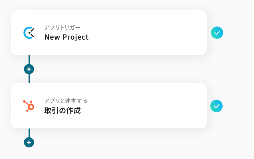 その場合、トリガーにはClockifyの「New Project」を設定し、その下にHubSpotの「取引の作成」オペレーションを設定してくださいね!