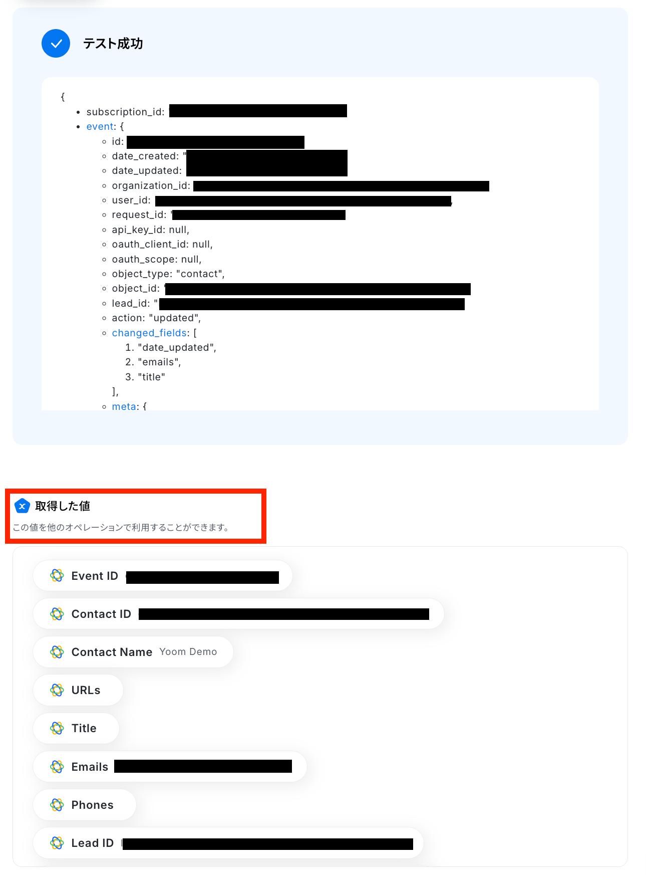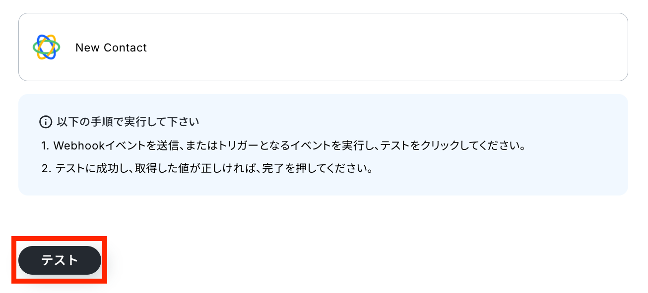 Yoomの設定に戻って、「テスト」をクリックしましょう!