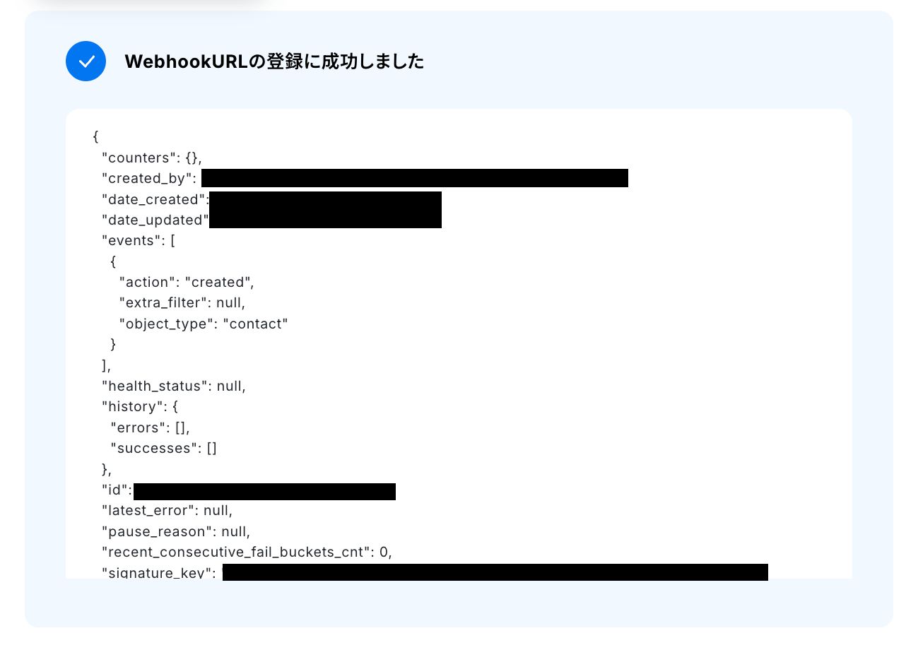 WebhookURLの登録に成功したら、次の設定へ進みます。