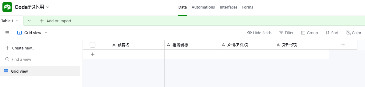 Codaでテーブルの作成がまだの方はここで作成しておきましょう。