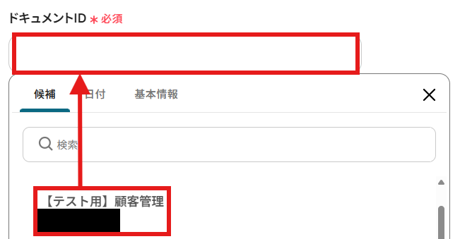 今回は、Dropboxにある「test」というフォルダの中に{{会社名}}というフォルダを作成しようと思うので、以下のように設定しました!