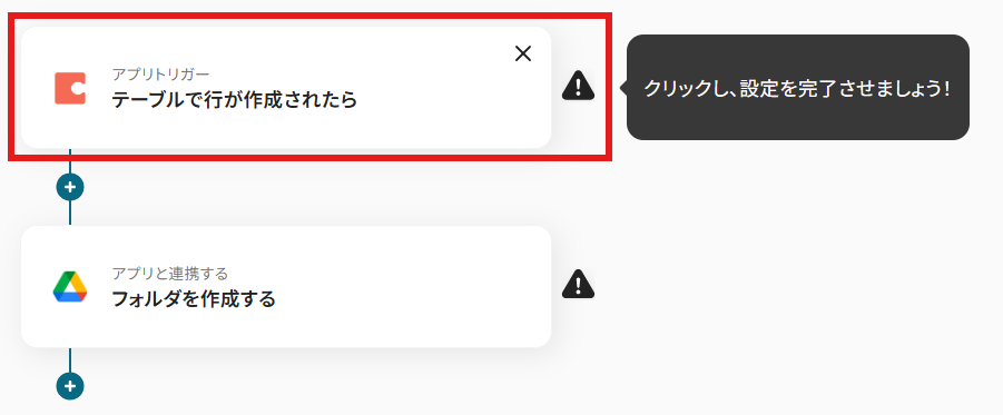今回は「Codaで行が作成されたら、Google Driveにフォルダを作成する 」フローを作成していきます! 作成の流れは大きく分けて以下の通りです。