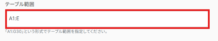 「テーブル範囲」にデータを追加する範囲を設定します。