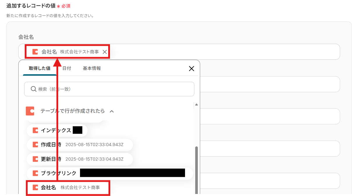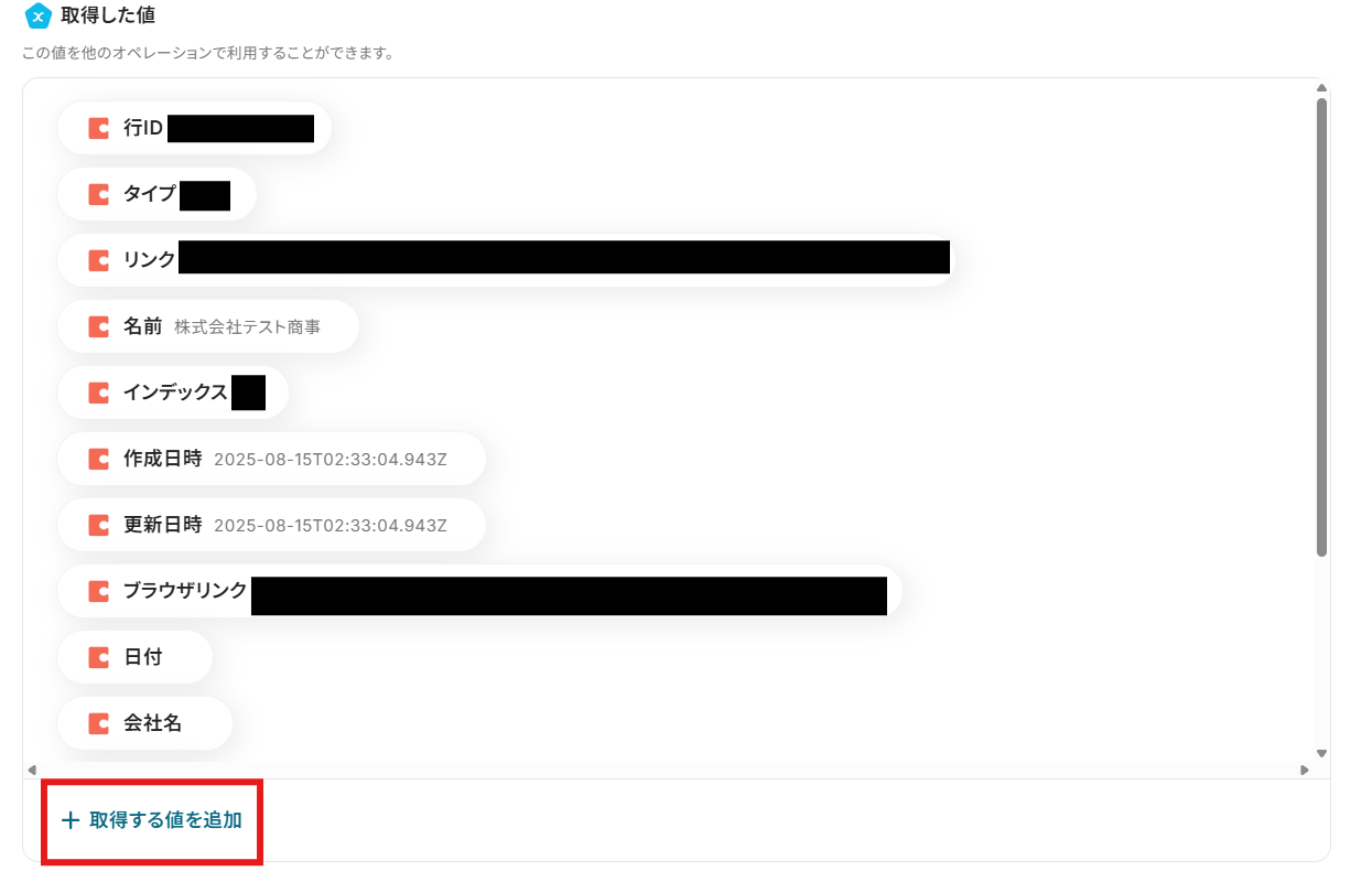 「取得した値」(アウトプット)は変数となるため、Codaのテーブルで行が作成される度にそのデータを活用できます!