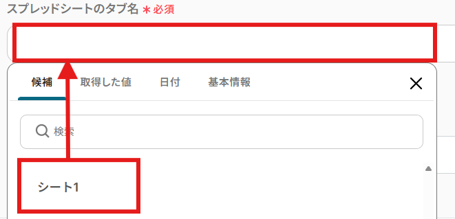 同様に「スプレッドシートのタブ名」を設定しましょう。