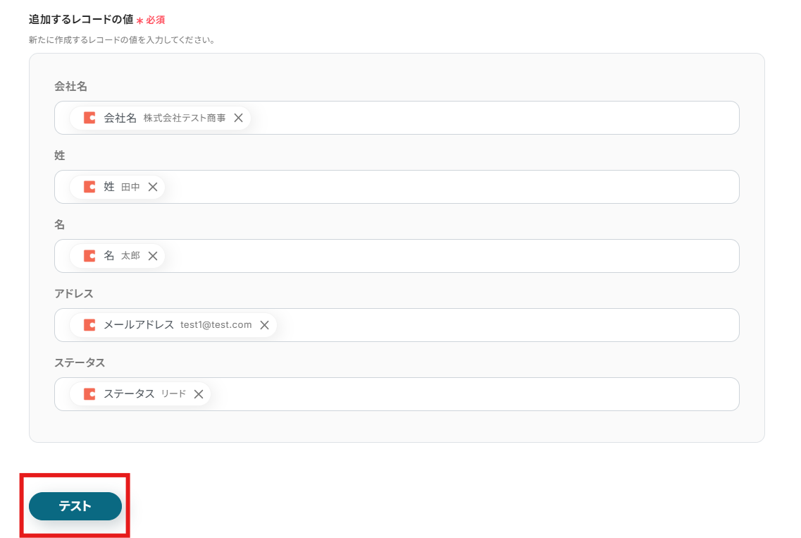 テストに成功すると「取得した値」(アウトプット)に反映されます。