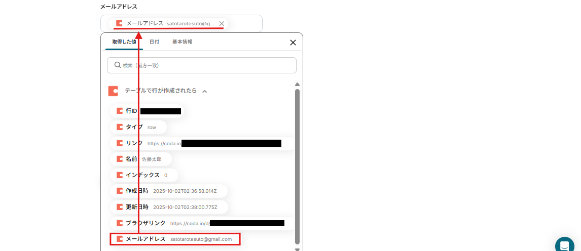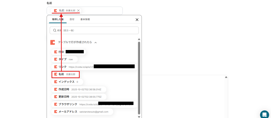 名前も同様にデフォルトでCodaのデータが引用できるように設定されています。