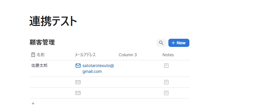 Codaにログインし先ほど指定したテーブルに、テスト用の行を追加してください。(架空の情報でOKです!)