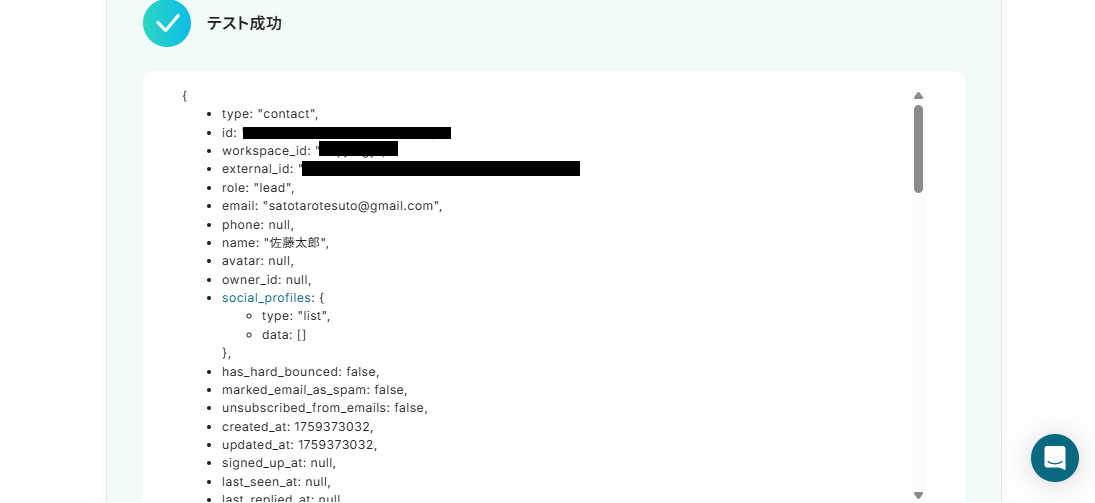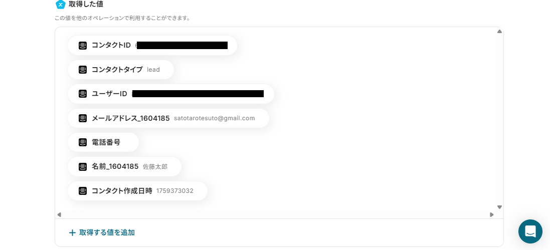 この設定により、Codaに行が追加されたら「メールアドレス」のデータを自動で取得し、Intercomのコンタクトに自動で引用することが可能です。