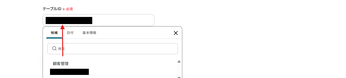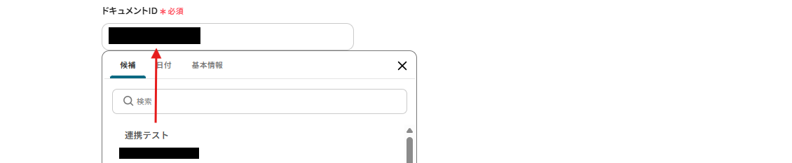 ドキュメントIDとテーブルIDは、表示される候補から選択します。