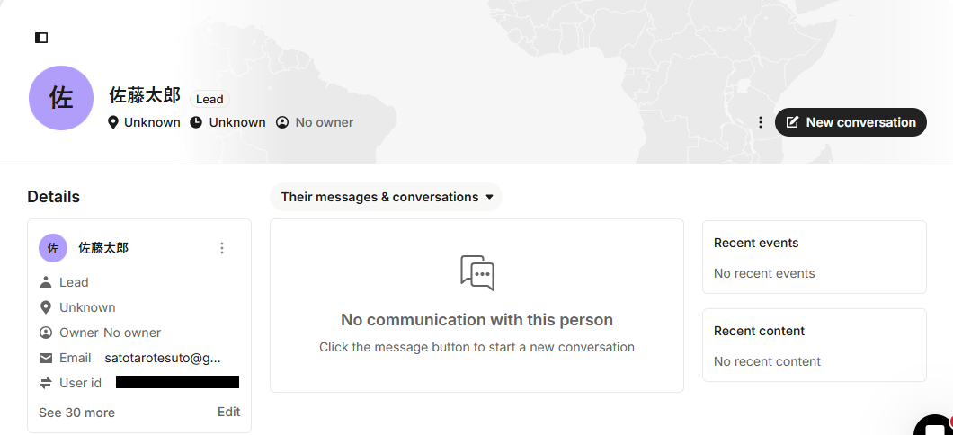 Intercomに新規コンタクトが自動で作成されるので確認してください。