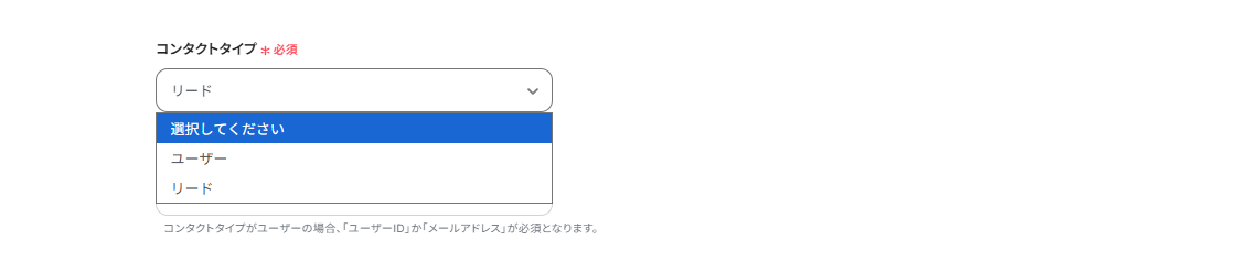 コンタクトタイプは、用途に合わせてプルダウンから選択してください。