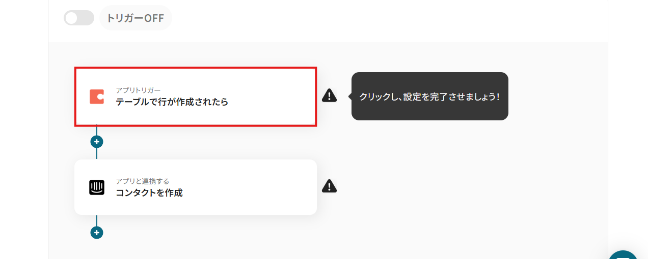まずは、トリガーの設定を行うため「テーブルで行が作成されたら」をクリックしてください。