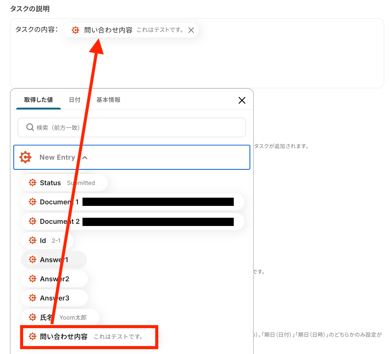タスクの説明は、これまでに取得した値を利用して設定してみましょう!