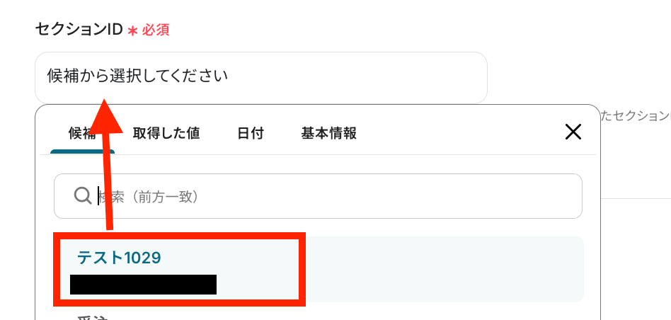 タスクを作成したいプロジェクトIDとセクションIDを、候補の中から選択して設定します。