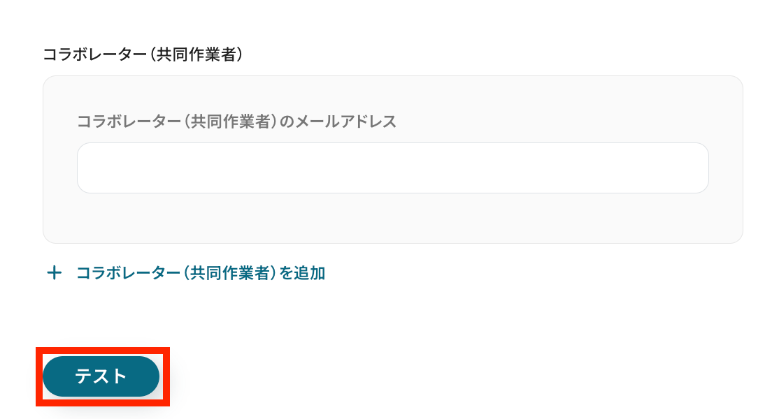 先ほど作成したフォームに回答を送信したら、Yoomの設定に戻ってテストボタンをクリックしましょう。