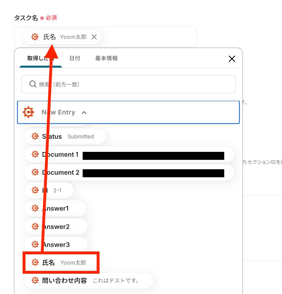 希望のタスク名を取得した値を利用して設定します。