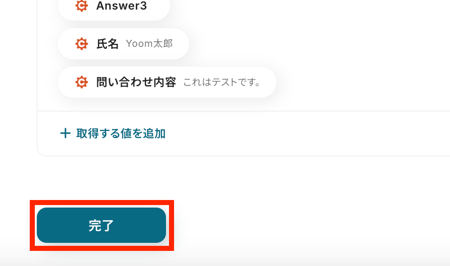 確認ができたら、Yoomの画面に戻り、「完了」ボタンで最後に設定を保存しておきます。
