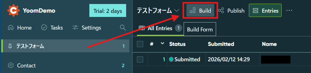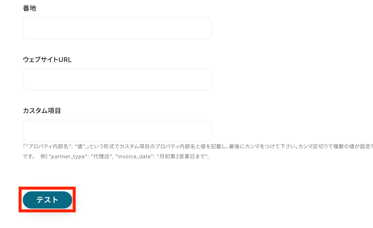 先ほど作成したフォームを送信したら、Yoomの設定に戻ってテストボタンをクリックしましょう。