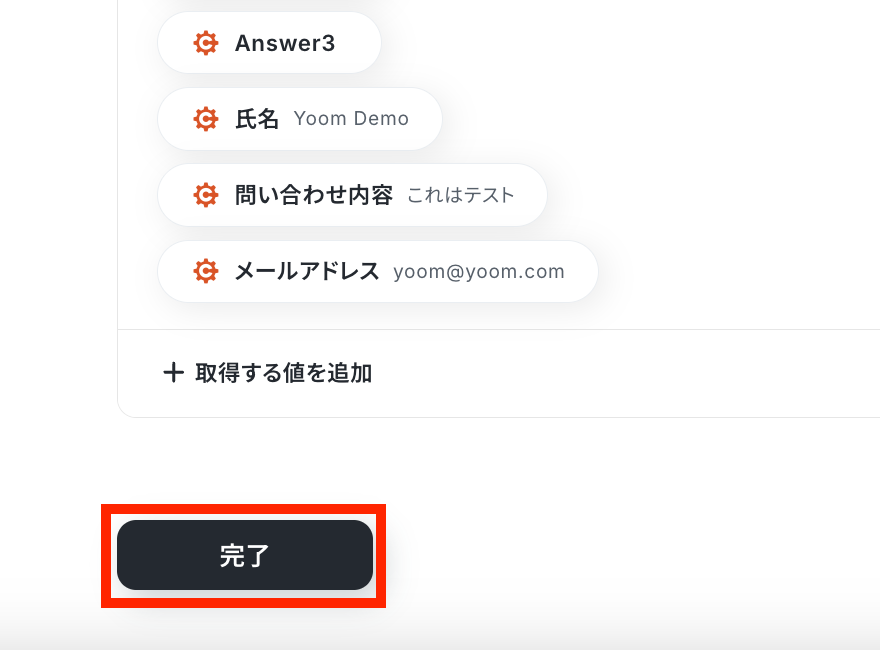 値が追加できたら、設定を保存するため、完了ボタンをクリックしておきましょう!