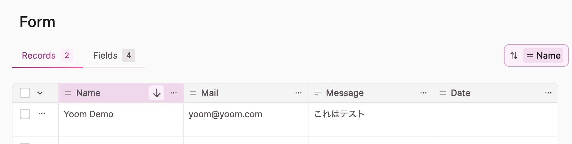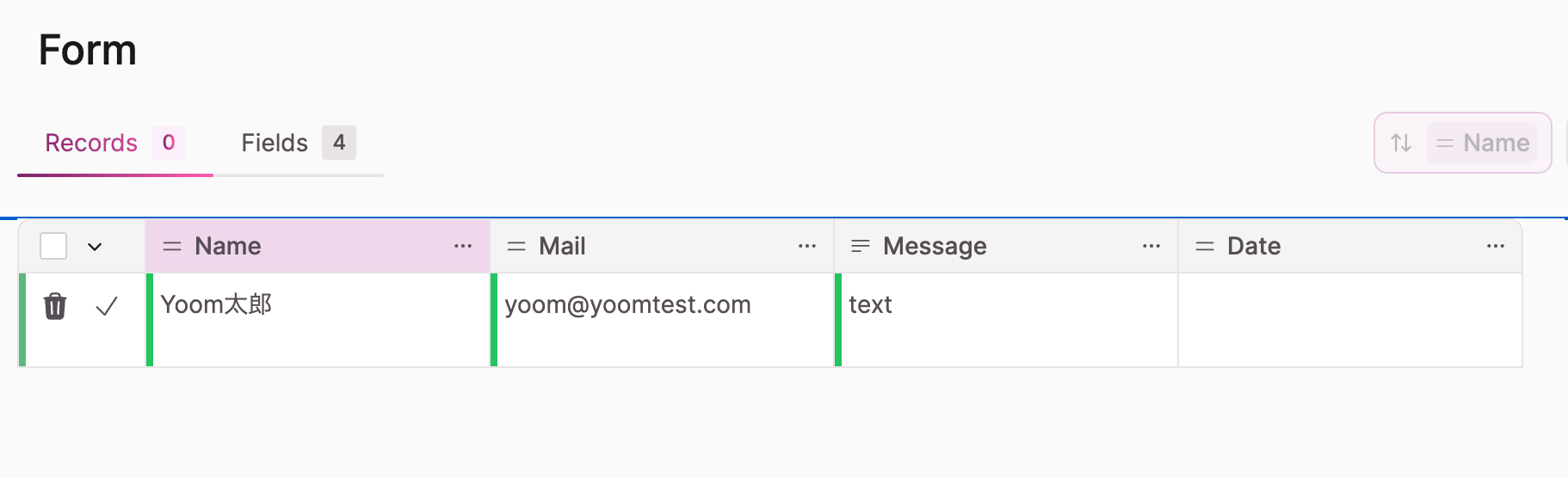 テスト成功で、Knackのレコードが作成されています。確認してみましょう!