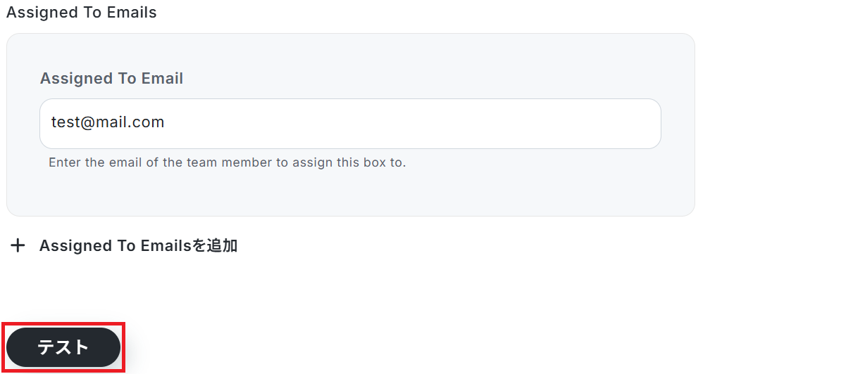 最後に任意でAssigned To Emails (担当者のメールアドレス)を設定し、テストしてください。