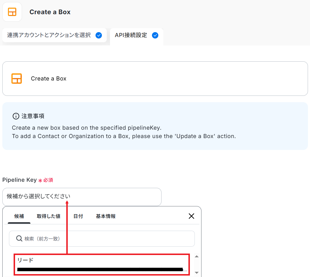 StreakでBoxを作成するオペレーションを設定する際に、Boxを追加したいパイプラインのキーを任意で指定してください。 ■注意事項