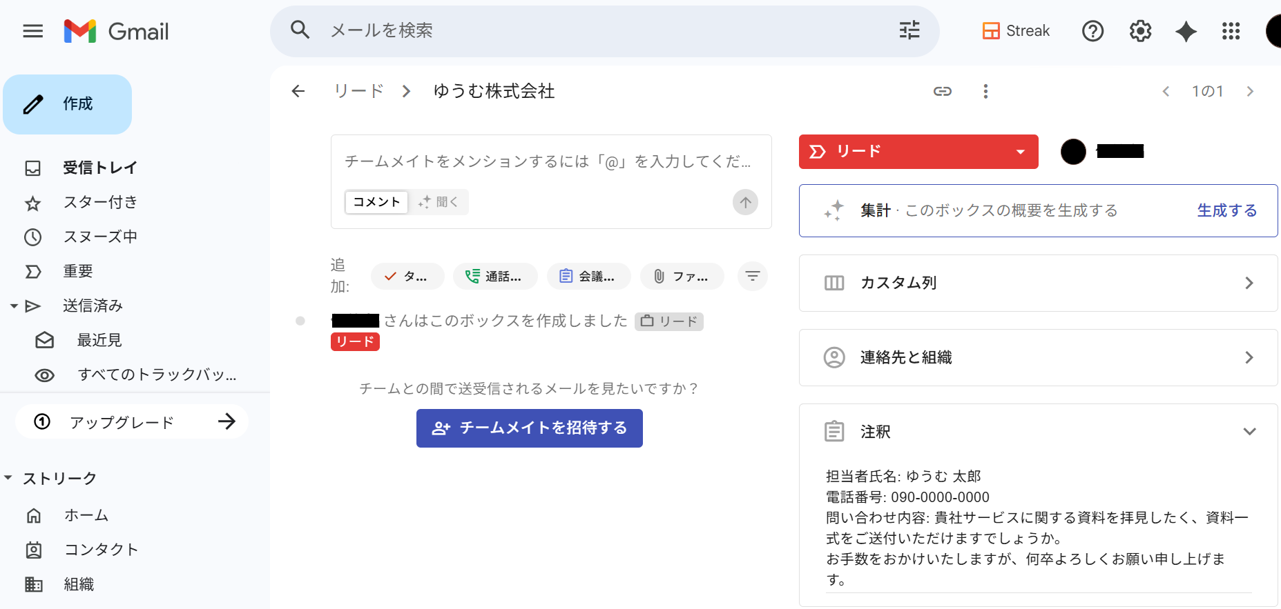 StreakとMicrosoft Teamsを併用し、顧客情報やリード情報などを手作業で転記している方 Streakをチームで活用しており、情報共有やデータ入力の効率化を目指しているマネージャーの方 手作業による情報入力の漏れや遅延を防ぎ、迅速な顧客対応を実現したいと考えている方 ■このテンプレートを使うメリット