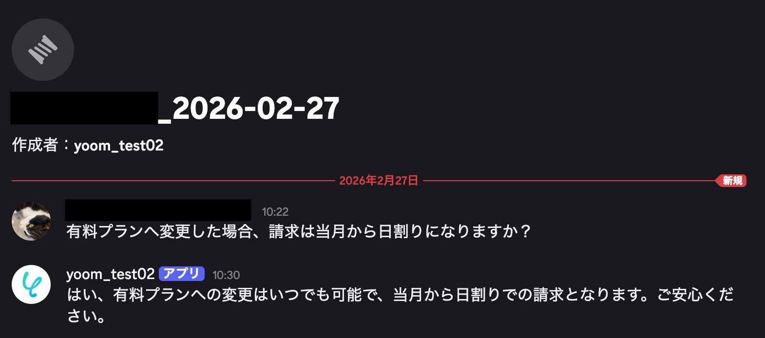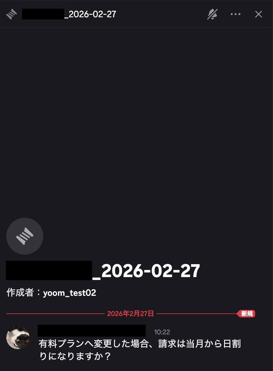 テストが成功したらDiscordの画面を開き、トリガーで取得したメッセージにスレッドが作成されているか確認してみましょう。