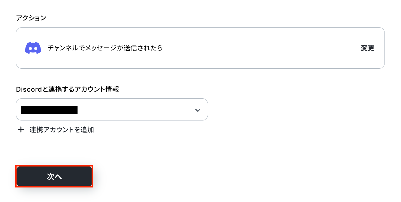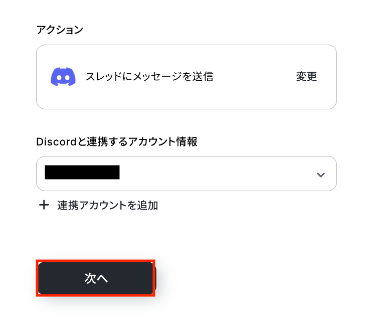 Discordと連携するアカウント情報に問題がなければ、「次へ」をクリックします。
