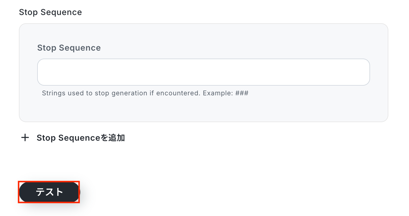 入力が完了したら「テスト」をクリックして設定した内容で、回答が正しく生成されるか確認しましょう。