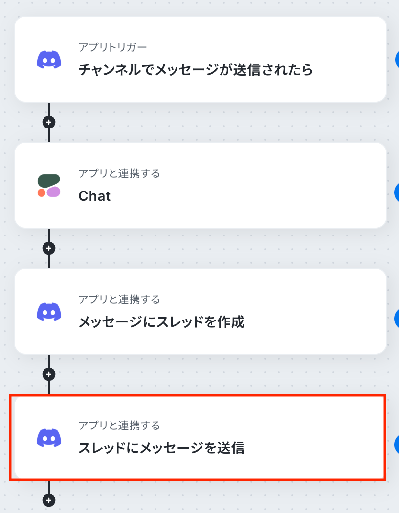 前のステップで取得した値を利用して、Discordのスレッドに返信用のメッセージを送信しましょう。