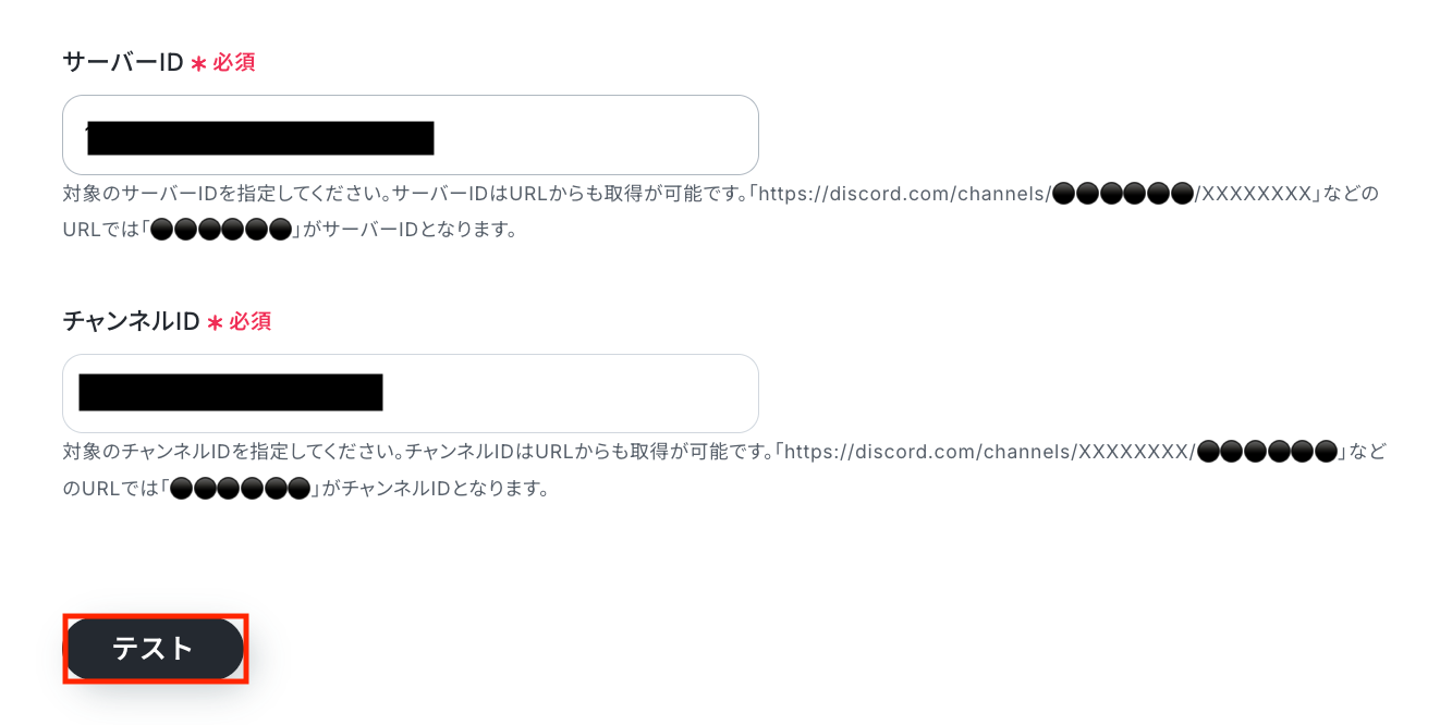 連携させるサーバーのIDを入力します。