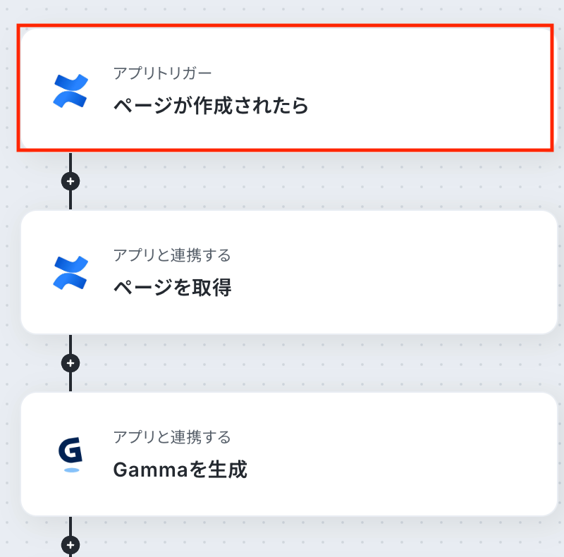 フローの作成方法 今回は「Confluenceでページが作成されたら、Gammaでプレゼン資料を自動生成する」フローを作成していきます!