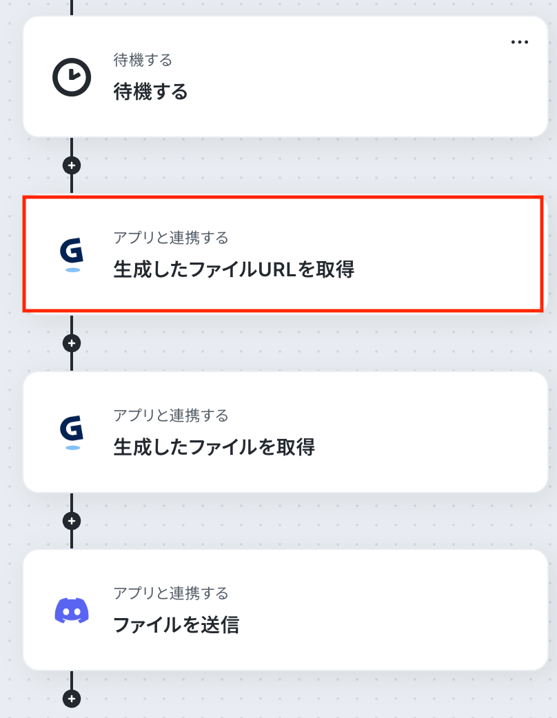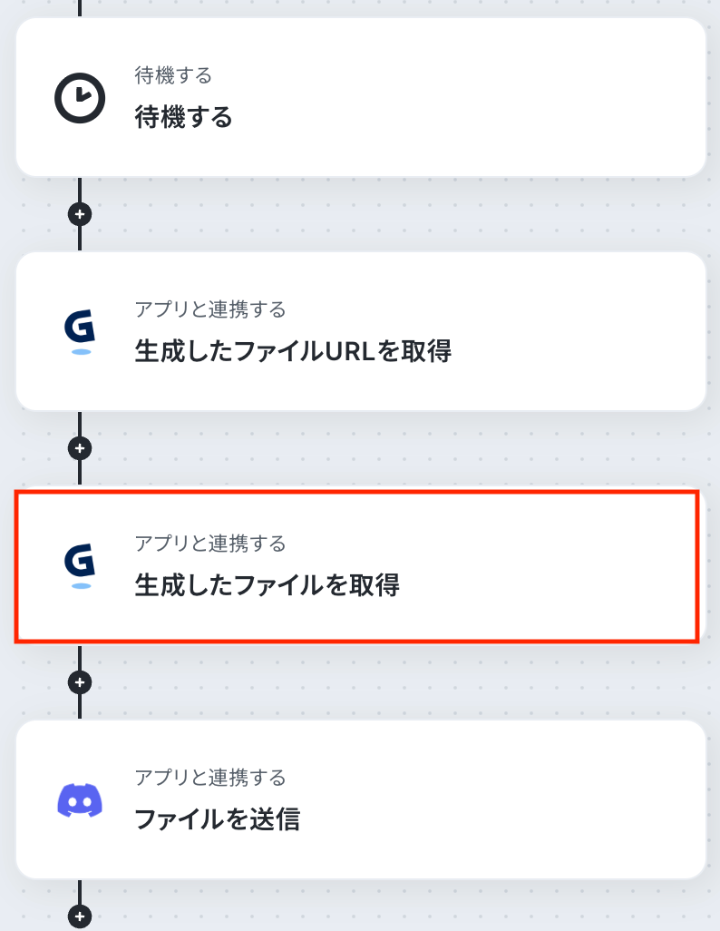 ステップ8:Gammaで生成したファイルを取得 続いて、前のステップで取得したファイルURLを利用して、Gammaで生成したファイルを取得しましょう。 「生成したファイルを取得」をクリックします。