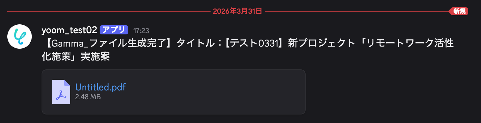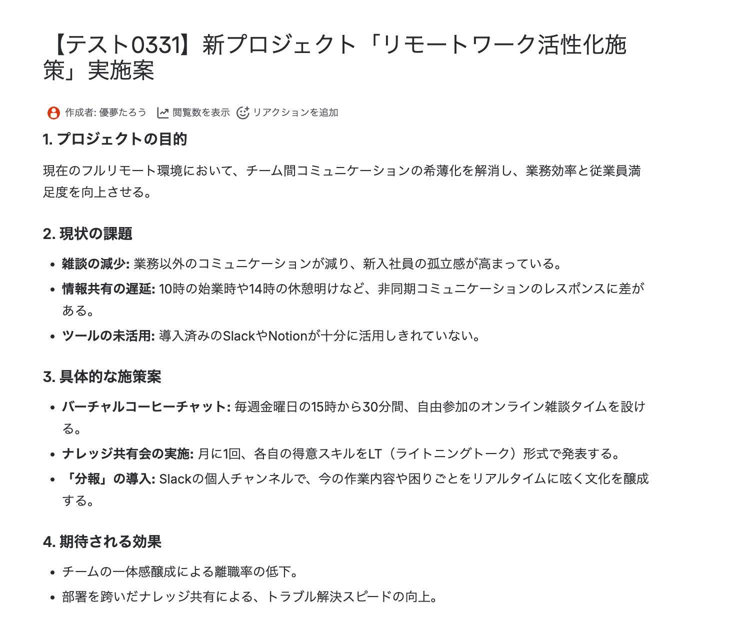 実際にConfluenceでページを作成し、Gammaでプレゼン資料が生成され、Discordにファイルが通知されるかを確認してみましょう。