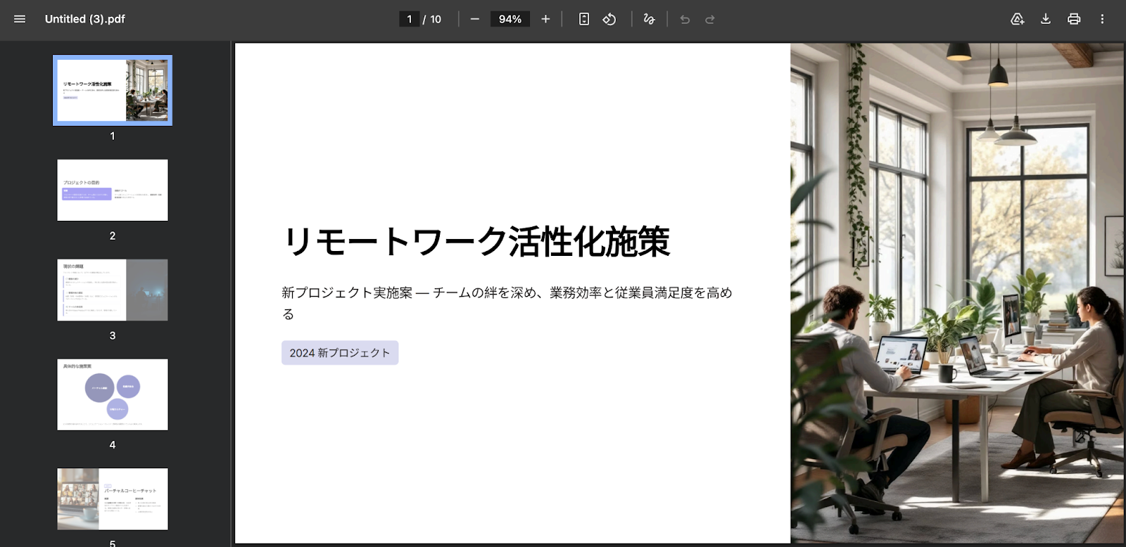 テストに成功すると、Gammaで生成したファイル情報が表示されます。 ファイルをダウンロードして開くと、以下のとおりプレゼン資料が生成されていました!
