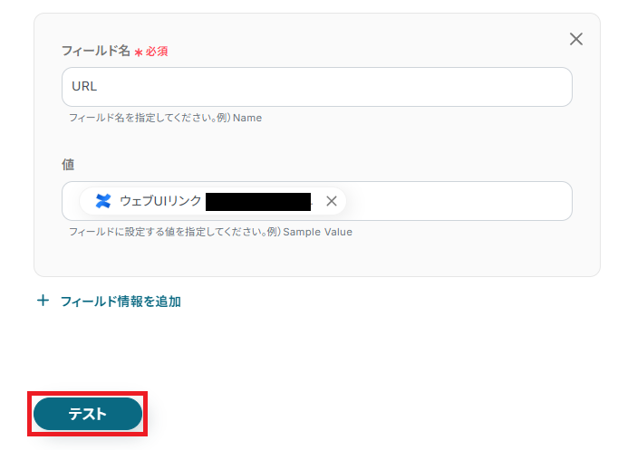 「+フィールド情報を追加」から、項目を追加することも可能です。